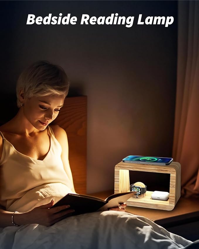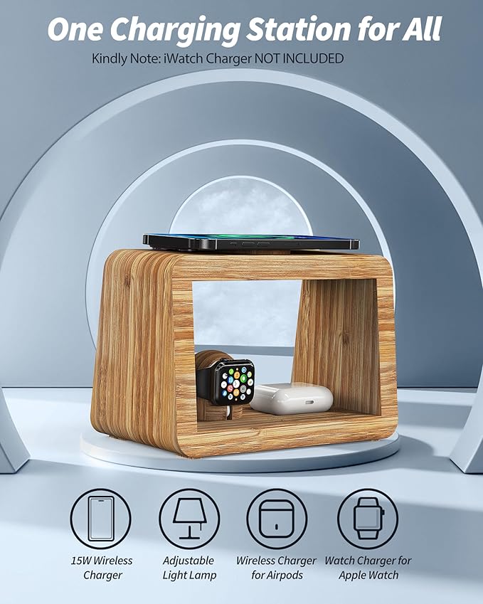 - Special Feature : 3 in 1 Wireless Charging Station for App|e Devices, Say goodbye to cable clutter, Best present for Christmas, Birthday, Father's day, Anniversary, Graduation, Made of easy-to-clean and 100% natural, sustainable, earth-conscious super-renewable Bamboo, Multiple Smart Protection and Anti-slip; Charging Adapter And Watch Holder for iWatch Included, Night Stand with Charging Station with Adjustable Brightness And 3-kind Light Colors Bedside Lamp 3 in 1 Wireless Charging Station for App|e Devices, Say goodbye to cable clutter, Best present for Christmas, Birthday, Father's day, Anniversary, Graduation, Made of easy-to-clean and 100% natural, sustainable, earth-con… See more