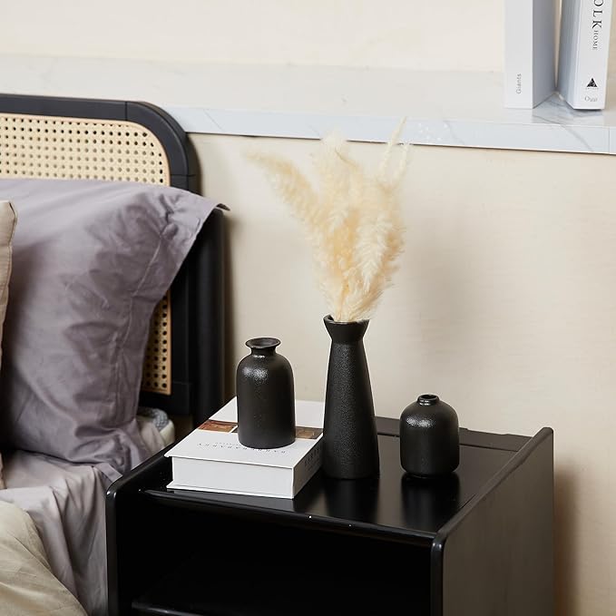 Black Ceramic Vase Set of 3,Small Boho Vase for for Decor,Matte Frosted Texture Finish,Modern Rustic Farmhouse Home Decor,Decorative vase for Pampas Grass&Dried Flowers,Shelf,Table,Mantel,Entryway