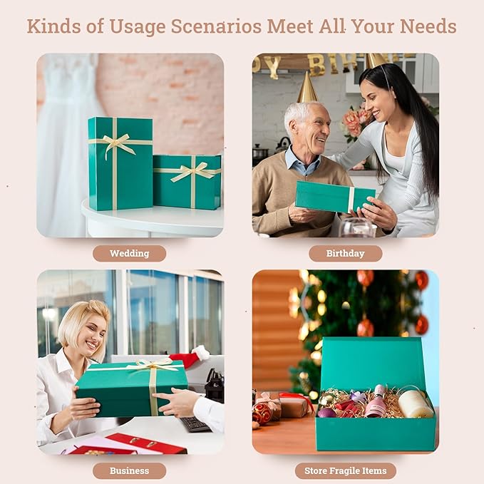 - 🎁Wide Application: These gift wrap boxes with lids for presents suit various celebrations, for Christmas, valentine's day,birthday gift,business gifts, party, graduation ceremony,wedding, anniversary, Thanksgiving and more occasions. Wrapping gifts for lovers,family, friends, kids,colleagues,neighbors,teachers,mentors,coaches,team leaders,pets,healthcare workers,or new homeowners.