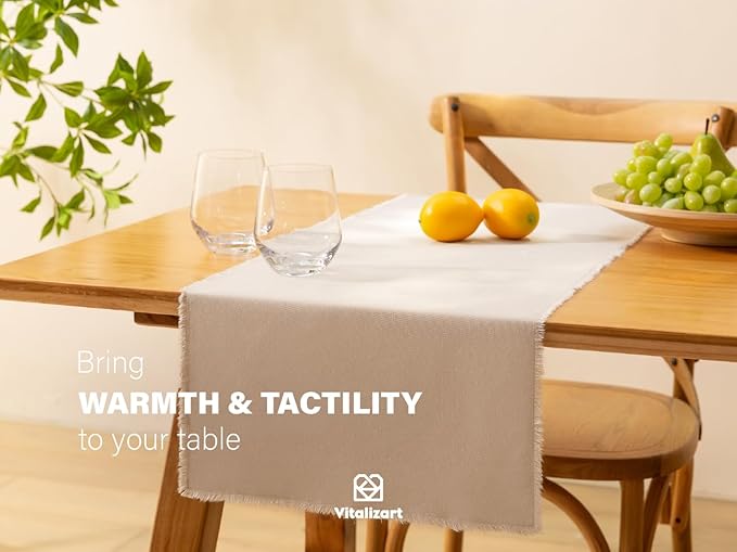 Vitalizart Table Runner 14 x 36 Inches Long Tan Cotton Linen Table Runners for Rustic Home Decorations Dining Room Wedding Decor Reception Bridal Shower Thanksgiving Christmas
