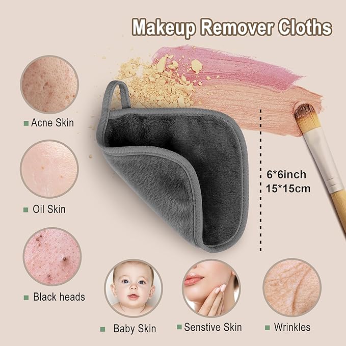- Gentle Soft Make Up Cloths: Our makeup microfiber towel is made from premium-quality microfiber material that is GENTLE SOFT and HYPOALLERGENIC. It effectively removes makeup without causing any irritation or redness, making it suitable for all skin types, especially sensitive skin