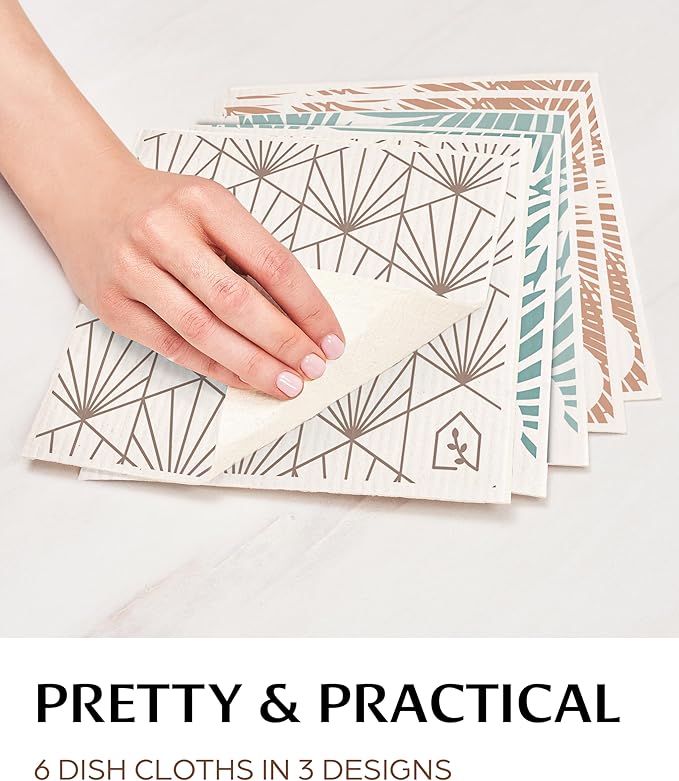 - SET OF SIX DISH CLOTHS: Choose between two sets - Artful Prints or Assorted Pastels, including Swedish dishcloths or papaya towels, and use the different colors and patterns to color code separate cleaning tasks; Each set includes six dishcloths