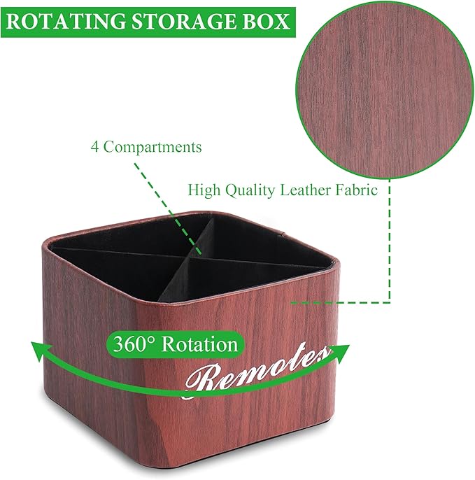 Hennaja Square Leather Art Supply Organizer,Remote Control Holder with Removable Dividers,360°Rotatable Pencil Holders,4 Compartments Organizer for Office Supplies Storage Box(1-Light Brown)