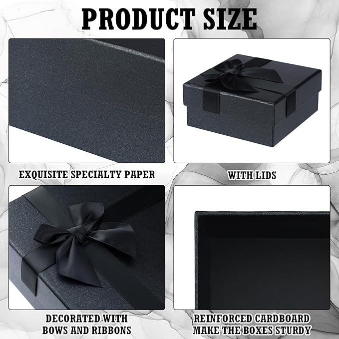 - Reliable And Quality Material: these gift boxes for presents are made of thickened cardboard, ensuring that they won't bend or collapse easily under the weight of your gifts; And the surface texture of these boxes is smooth and soft; The ribbon bows are made of polyester, which is a quality material that won't easily tear or fray; You can be confident that your gifts will be well protected and beautifully presented