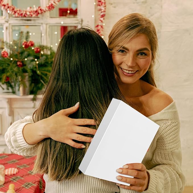 - 【Wide Usage Cardboard Gift Boxes】 White exterior with gray kraft interior, these white gift boxes with lids are perfect used as Christmas gift box, holiday, birthday, graduation, engagement, anniversary, wedding or other gift giving occasion.
