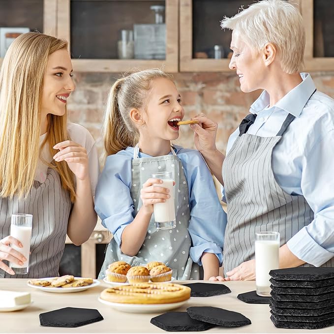 36 Pieces Slate Coasters Bulk, 4 Inch Hexagonal Blank Black Stone Coaster for Drinks Natural Handmade Hexagon Rock for Laser Engraving, Gifts, Engraver, Wedding, Christmas, Home Decor