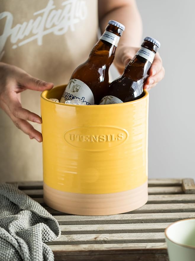 - Functional and Stylish: The classic "UTENSILS" embossing and two-tone design blend seamlessly with any kitchen décor, from modern to farmhouse. It's not just a utensil holder; it's an elegant kitchen accessory.