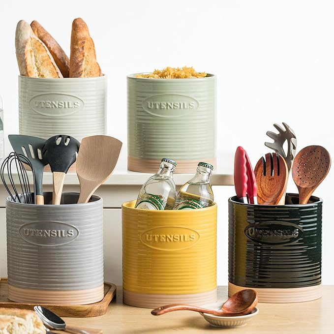 - Versatile Utility: Beyond utensils, this utensil crock can double as a planter, a vase, an ice bucket, or even a stylish mini trash can, adding versatility to your kitchen accessories.