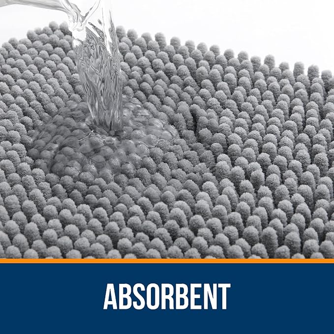 - Ultra Absorbent - Meet OLANLY's absorbent bath rug with dense chenille, keeping floors clean when you step out of the bath or shower. Instantly dry your feet on this shaggy rug, protecting your floor from water damage.