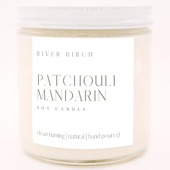 River Birch Candles Patchouli Mandarin Scented Candle | Premium, All-Natural, Non-Toxic, Soy Candles | 16oz 90 Hr Burn Time | Cozy Relaxing Gifts for Home