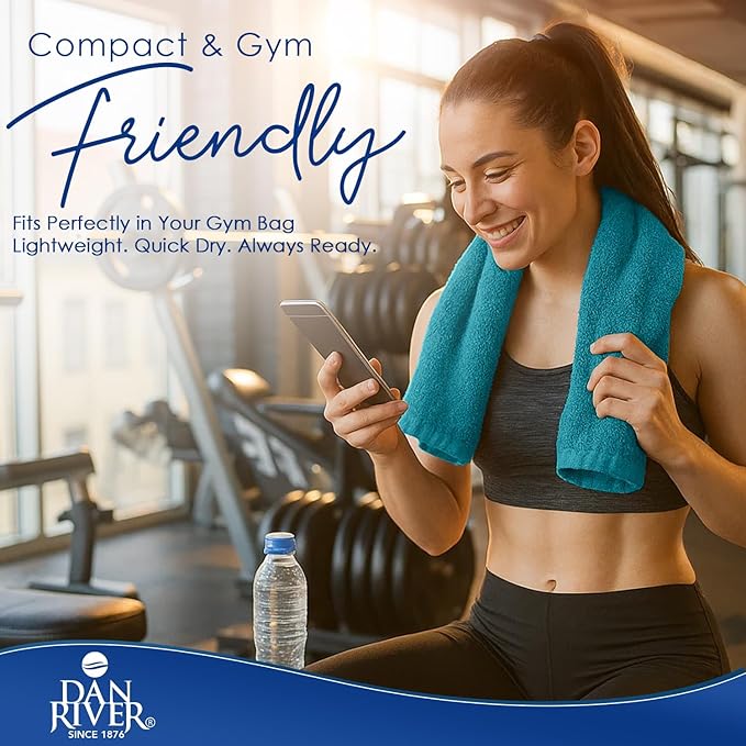 DAN RIVER 6-Pack Premium Hand Towels (16x28 Inches) - 100% Cotton, Ultra Soft, Lightweight, Highly Absorbent Towels for Bathroom, Spa, Gym, Salon, Hotel, and Travel - 550 GSM - Teal