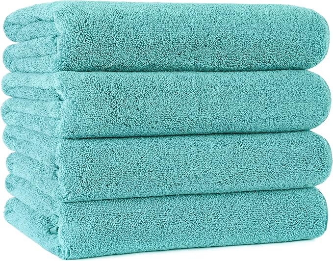 POLYTE Microfiber Quick Dry Lint Free Bath Towel, 57 x 30 in, Pack of 4 (Aqua)