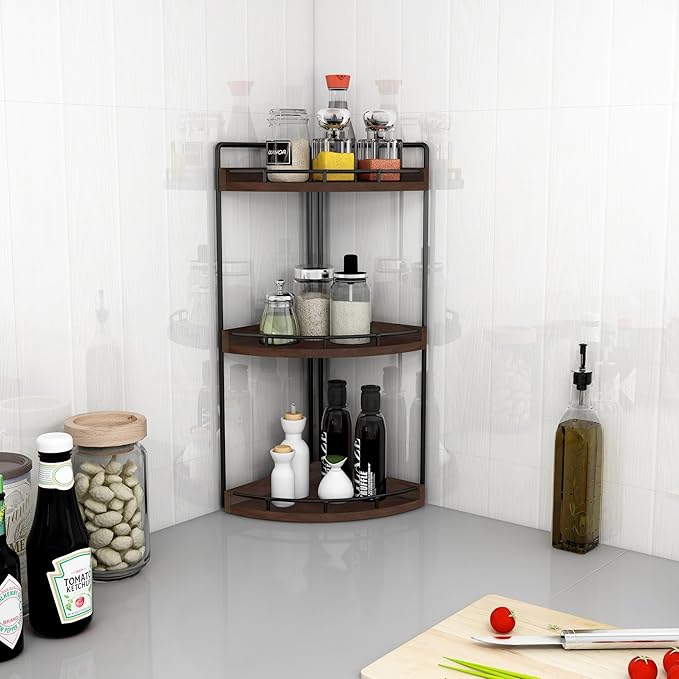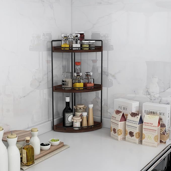 Dorhors 3-Tier Corner Bathroom Organizer Countertop for Storage,Vanity Tray,Wood Counter Organizer for Kitchen,Bathroom,Dresser (Walnut)