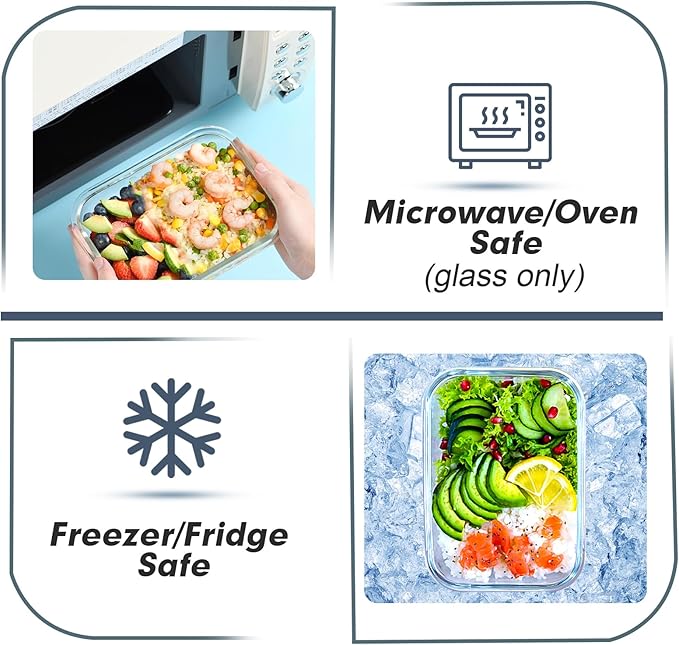 - VERSATILE AND CONVENIENT: BAYZZ glass meal prep containers are microwave, oven, freezer, and dishwasher safe, allowing you to easily store, freeze or reheat meals, ideal for meal prepping and storing leftovers.