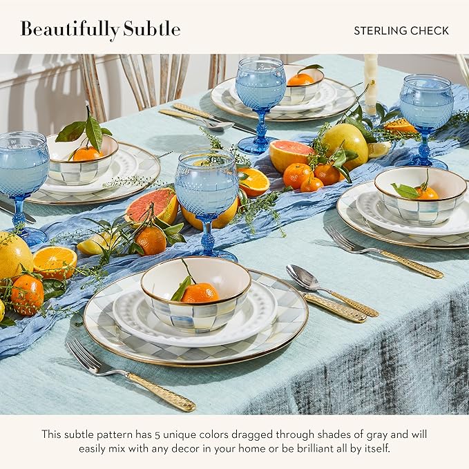 MACKENZIE-CHILDS Enamel Everyday Bowl, Serving Bowl for Entertaining, Extra-Small, Gray-and-White Sterling Check, Set of 4