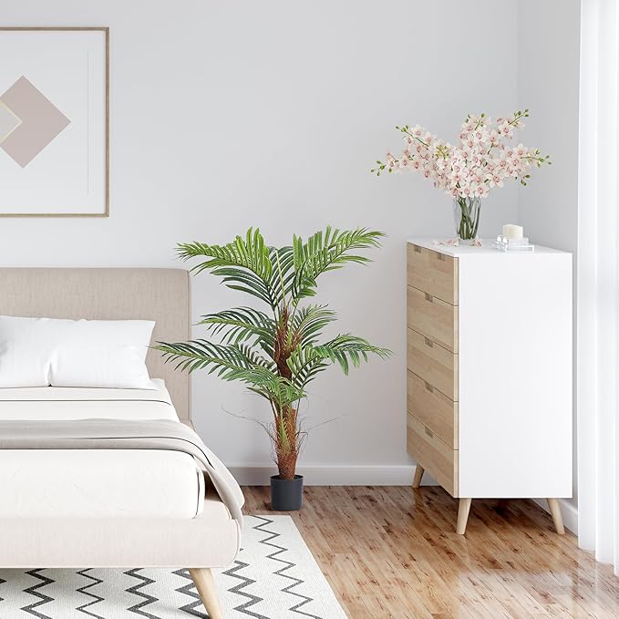VEVOR Artificial Palm Tree, 4 FT Tall Faux Plant with 10 Artificial Leaves and Moss-Covered Potting Soil, Lifelike Green Fake Tree for Home Office Christmas Decor Indoor Outdoor - 2 Pack