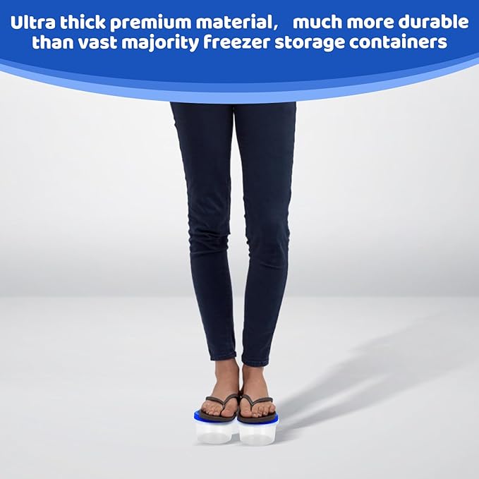 - PREMIUM DESIGN: Our freezer containers and lids are stackable, so it keeps your home/freezer/fridge organized. It's also easy to store when not in use, or for travel and transport.