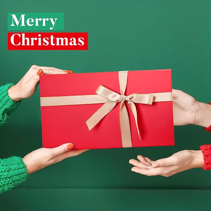LIFELUM Red Christmas Gift Box 13.85 x 8.35 x 4.45 inch Large Gift Boxes with Magnetic Closure Luxury for Gifts Box Contains Card, Ribbon, Shredded Paper Filler Wedding, Halloween, Birthday