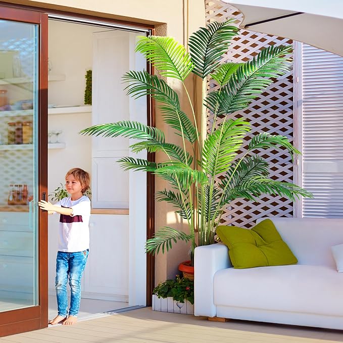 - Home Decor: This large faux palm plant matches perfectly with any Indoor space, providing freshness and greenery for any room, terrace, balcony or patio; Height: 7 Feet (82.7 in.); QTY:2