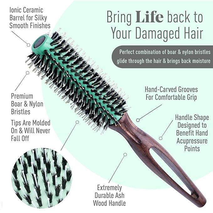 - ✅ PERFECT TENSION — Made with a combination of nylon and premium boar bristles that create a perfect grip while styling. Tips of nylon bristles are molded on so they will never fall off. Use with moderate blow dryer heat.