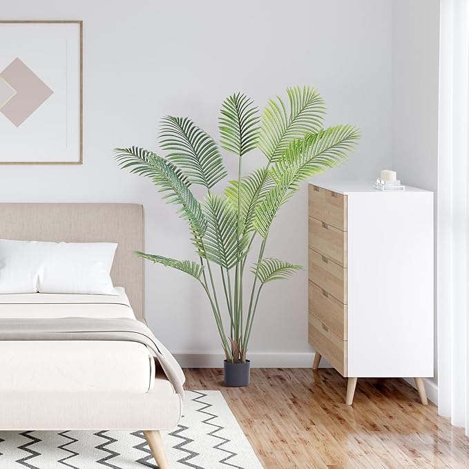 VEVOR Artificial Palm Tree, 6 FT Tall Faux Plant, Secure PE Material & Anti-Tip Tilt Protection Low-Maintenance Plant, Lifelike Green Fake Tree for Home Office Warehouse Decor Indoor Outdoor