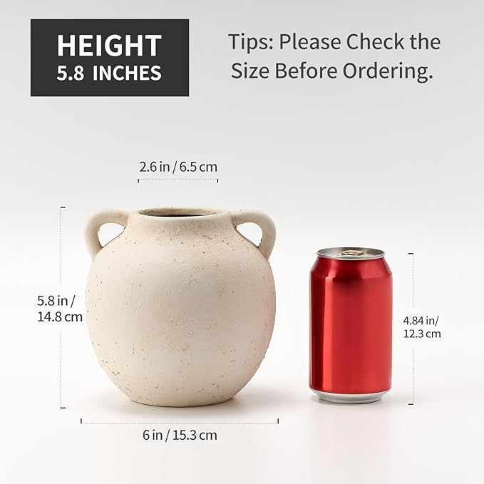 Ceramic Vase, 5.8 Inch Terracotta Vase with Handles, Boho Decor Decorative Vase, Rustic Vase for Home Decor, Farmhouse, Living Room, Table - Beige