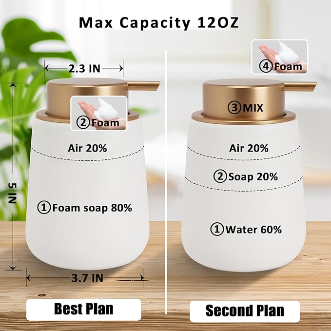 Soap Foaming Dispenser Ceramic with Easy-to-Press Pump Hand Foam Dispenser for Shampoo Bathroom Kitchen Hotel 12 oz