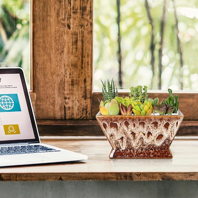 - 【Perfect Size】The package includes a planter pot with drainage in perfect size: 7.1'' *4.1'' * 3.7'' (L*W*H). For any quality problems, please feel free to let us know. Artketty will never disappoint any customer.(PLANTS NOT INCLUDED)