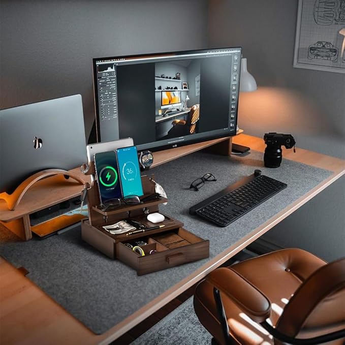 - 🔌TAKE CONTROL OF YOUR GEAR - AND YOUR LIFE: Tired of tangled wires? Had it with clutter and chaos? Check out this phone docking station for men and women; It keeps your phones and tablets charging, your cables neatly organized, and your everyday must-haves right there at your fingertips; So you can grab what you need when you need it