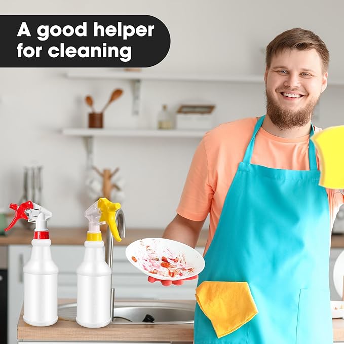 Eccliy 12 Pcs 16 Oz Plastic Spray Bottle, Adjustable Empty Reusable Sprayer for Cleaning, Planting, Water, Bathroom and Kitchen, BBQ, Commercial and Residential(Red, Yellow,Original)