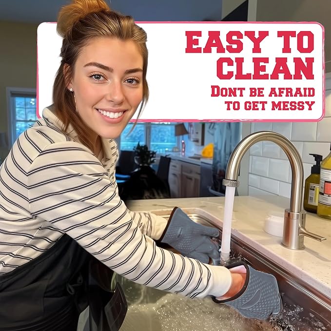 - Don't Sweat After A Short Use - We added a cotton layer inside our heat gloves for cooking that increased the comfort and durability of the gloves. For the same best price, and despite all of that, the flexibility of our grilling gloves is amazing! You got to try it! This is how to barbecue right, a must-have grill accessories set/traeger grill accessories/smoker accessories heat proof gloves for cooking.