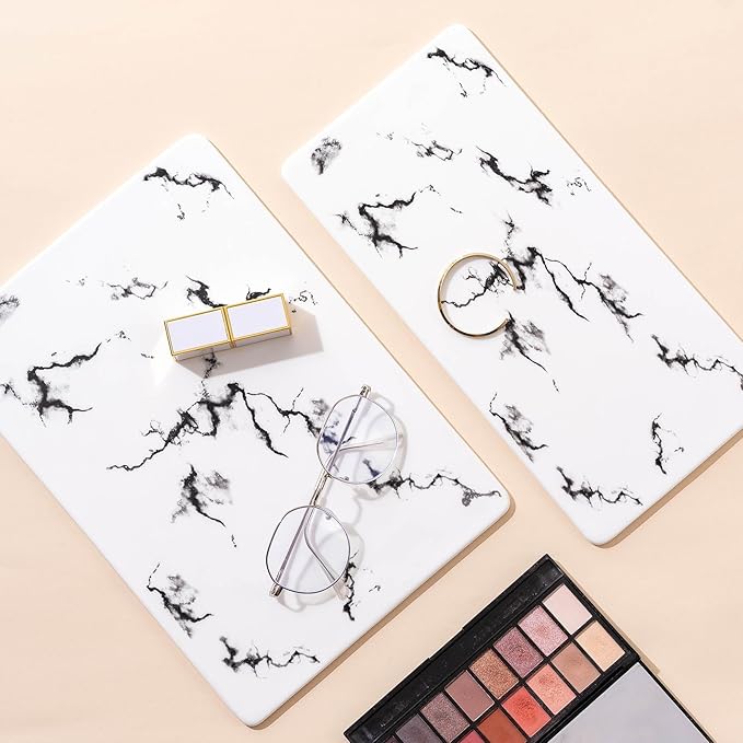 - 💦Luxurious Details: The marble-look ceramic trays add an elegant touch. Generously sized to hold bottles, jars, accessories and everyday essentials. Keeps clutter out of sight.