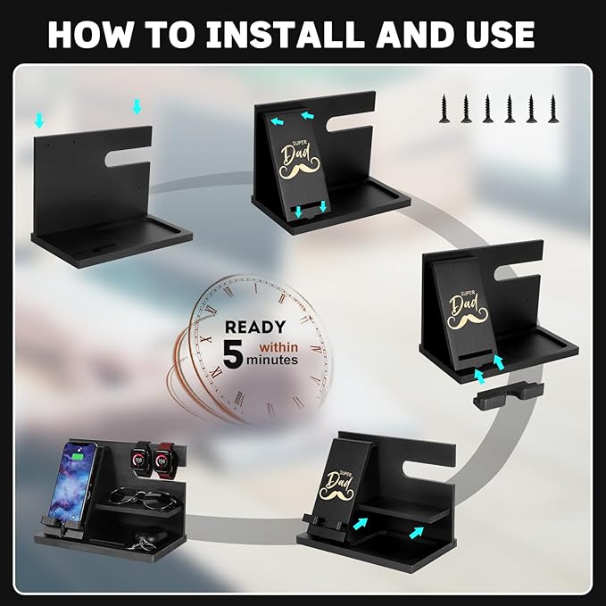 - MULTIFUNCTIONAL CHARGING STATION AND ORGANIZER: Charge your cell phone while keeping your daily necessities handy (please note that the accessories shown in the picture are not included).