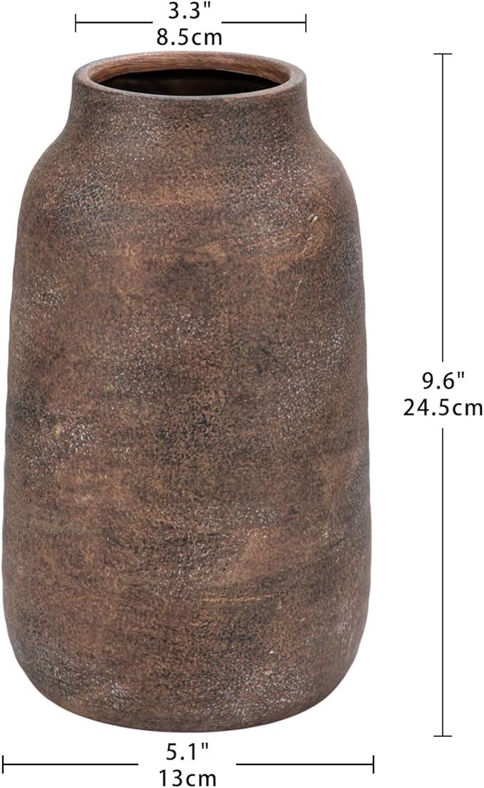 - ELEGANT TALL SILHOUETTE: Standing 9.6” high, this rustic vase creates an eye-catching vertical focal point. The narrow neck and gently curved body are ideal for showcasing long-stemmed dried flowers.
