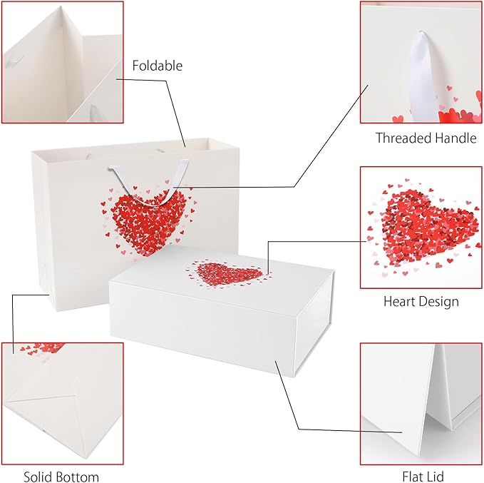 - Quality: The valentine gift box-bag is made from high-quality hardboard has a matte finish. The sturdy gift boxes tape used by Tesa from Germany