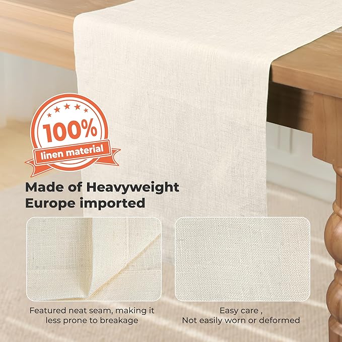 - 100% Pure European Flax Linen Table Runner: This table runner is made of pure European flax linen, which is known for its durability and quality.