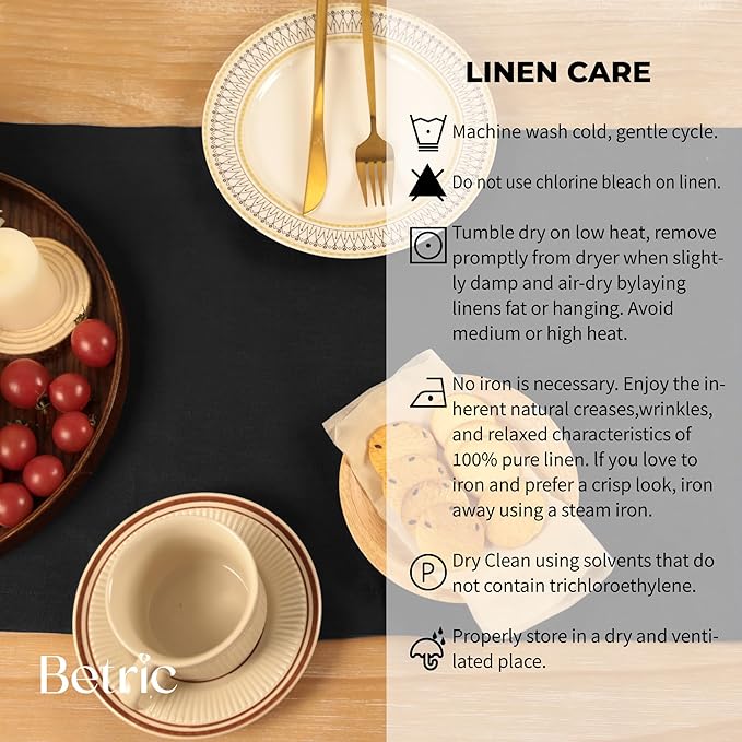 - Easy Care - Machine Washable, Low Iron as Needed, Steam Iron for a Crisp Look: This table runner is easy to care for and requires minimal maintenance. It can be machine washed and ironed on low heat as needed. The natural fibers and classic aesthetic of the linen mellows with each washing, betters with age, and requires minimal care.