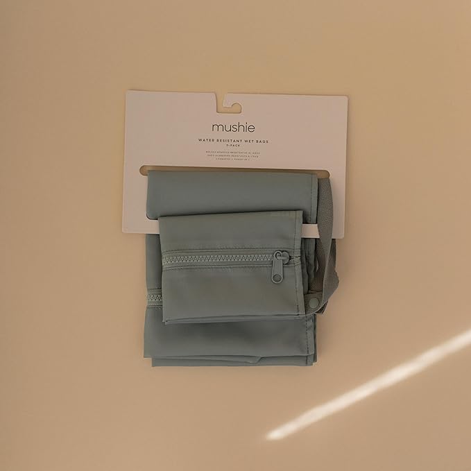 - Comfort on the Go: Featuring a zipper closure and machine washable, water resistant material, mushie wet bags are designed to help tackle messy situations on the go. The handles include a snap closure to easily hang or attach to a stroller.