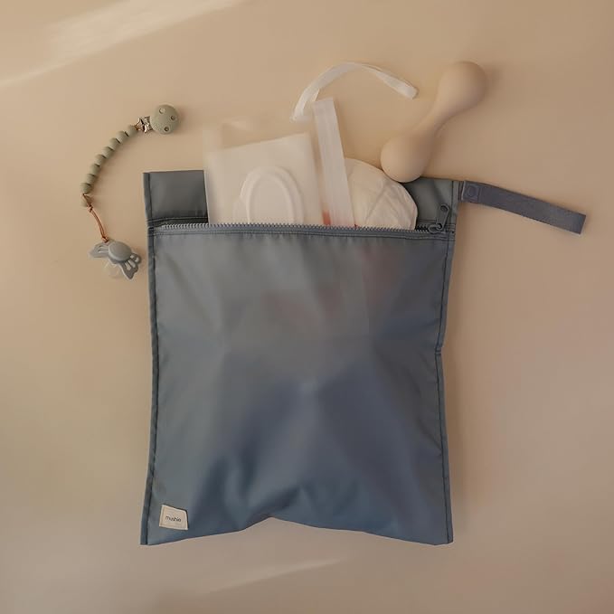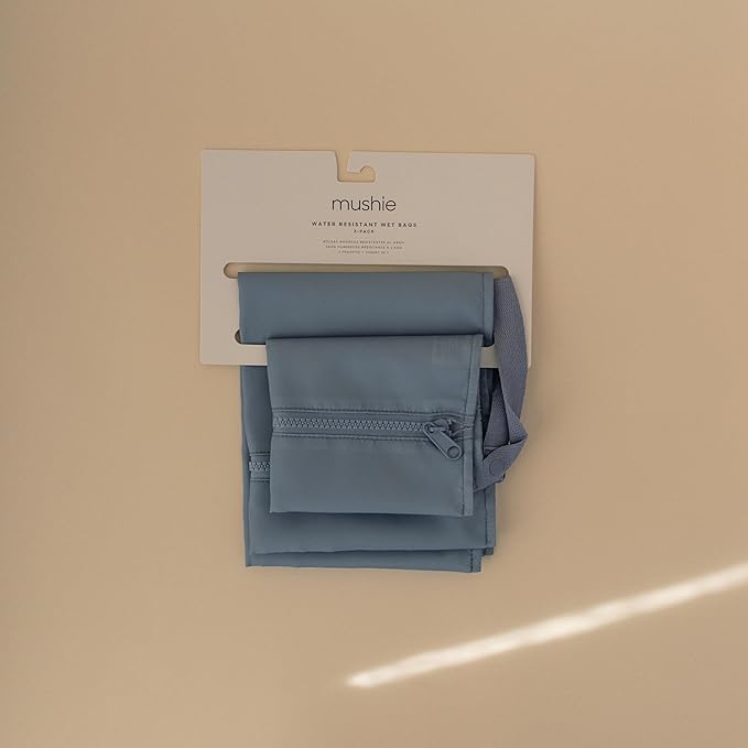 - Comfort on the Go: Featuring a zipper closure and machine washable, water resistant material, mushie wet bags are designed to help tackle messy situations on the go. The handles include a snap closure to easily hang or attach to a stroller.