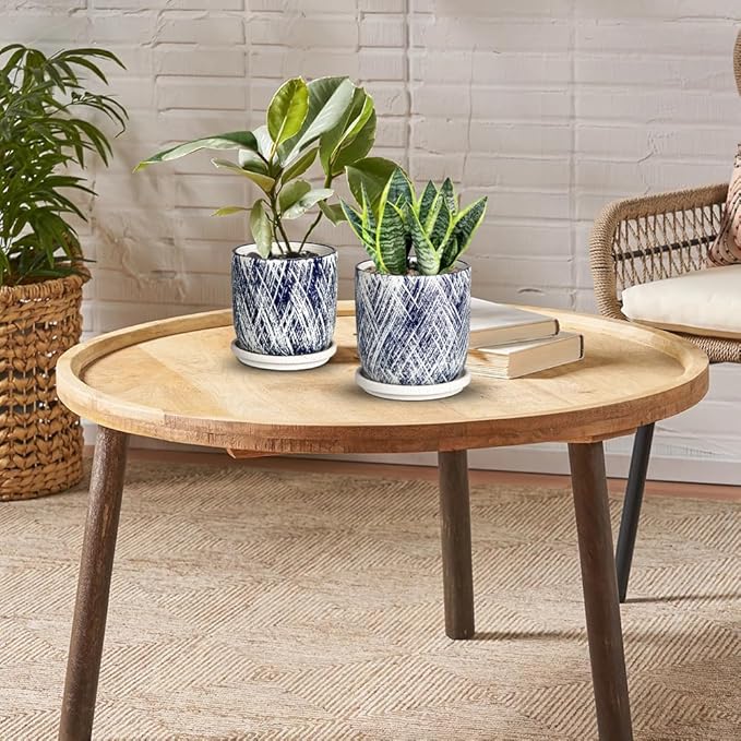 - 🌱【Breathable System】Every ceramic planter comes with a drainage hole in the bottom, silicon plug and attached saucer, which preventing bottom water from corroding plant roots also collect excess water without leakage. Deep planting space promotes root growth. Our blue pots for indoor plants create a healthy growth environment for potted greenery.