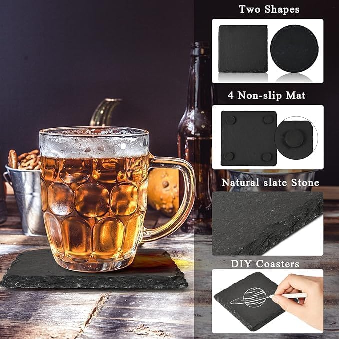 - The slate coasters bulk are durable, stylish and flat, has increased longevity, does not need as much maintenance as other coasters. Perfect to sent to families, lovers, friends, colleagues, neighbor as a gift.
