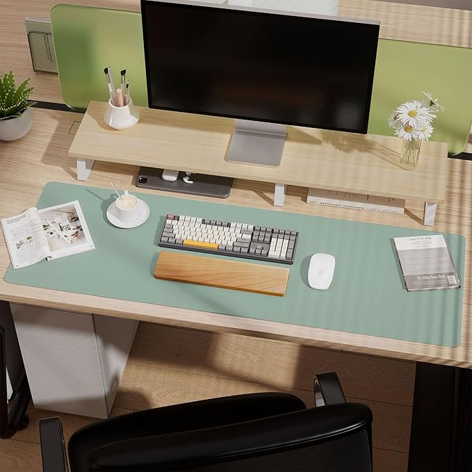 - Large Mouse Pad: Upgrade your workspace with our large desk pad, eliminating the need for an extra mouse pad. Transform your desk into a spacious and professional environment. The back side features a special suede design, significantly enhancing friction resistance with the desktop to prevent slipping. Experience a 70% increase in friction resistance compared to double-sided leather, ensuring a stable and secure workspace.