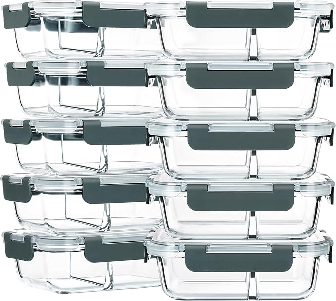 - PORTION CONTROL FEATURE:The portion control feature of the divided glass lunch containers allows you to regain control over your meals. The two compartments glass containers make it easy to organize your meals and keep your diet plan.