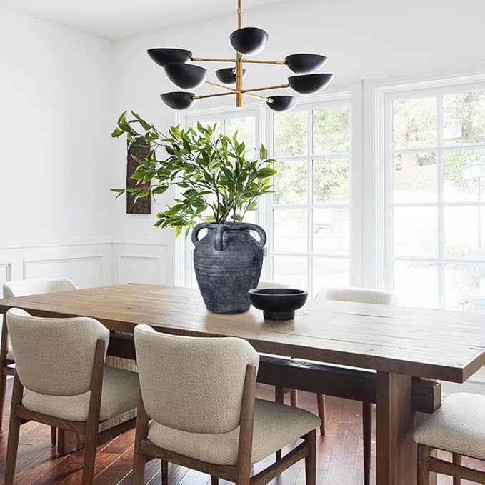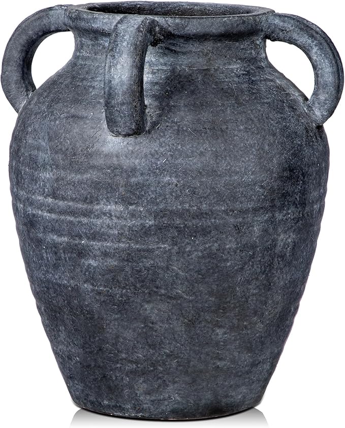 Handmade Flower Vase, 9.8" Tall Terracotta Vase, Vintage Ceramic vase, Rustic Antique Decor with 4 Handles, Wide Mouth, Matte Finish for Home Office Resto Café Décor