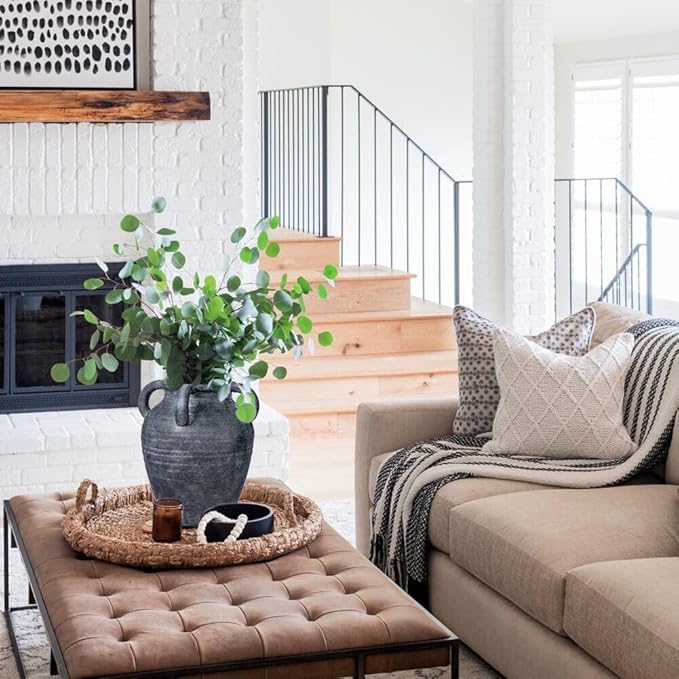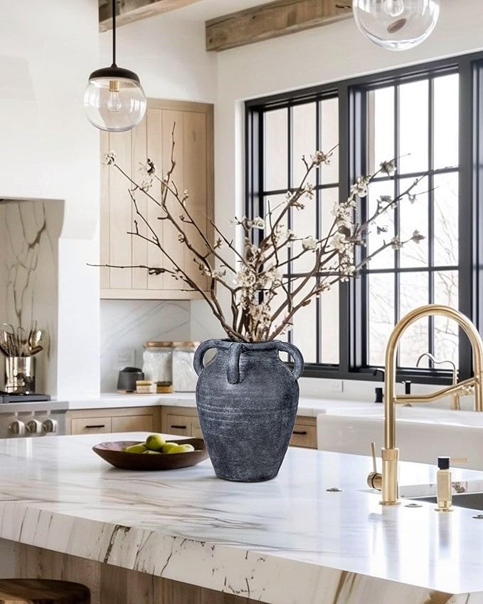 - Featuring three handles, and a rough unfinished matt exterior, our large decorative vase seamlessly integrates into any space, adding a touch of history and enduring elegance to your home. It's the perfect addition to your bookcase, kitchen styling, console styling or grouped together on a shelf with other decor pieces. Versatile and sophisticated.