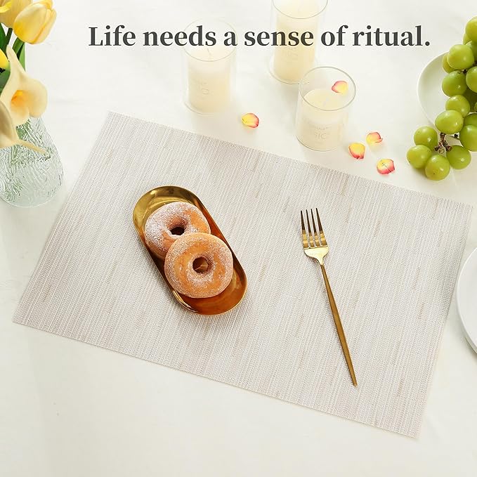 Leetaltree Pale Beige Placemats Set of 12 - Heat Resistant Non-Slip Place mats for Dining Table, Washable Durable PVC Vinyl Woven Table Mats(Pale Beige, 12)