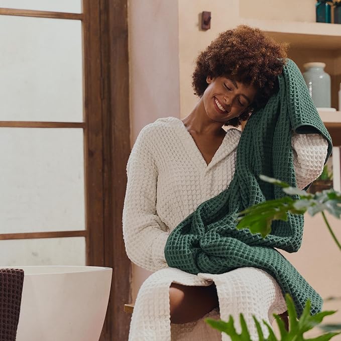 Luxury Japanese Cotton Waffle Bath Towel | Plush, Absorbent, and Quick Dry | Free Storage Bag Included (Forest Green, Bath Sheet Set (3-Piece))