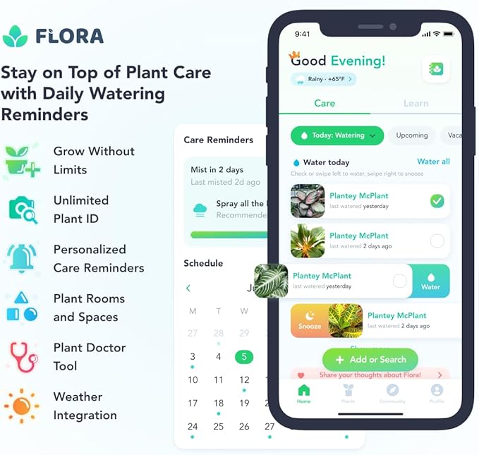 - π± SMART PLANT COACHING - Get free personalized care tips, misting reminders, and plant identification with our Flora app. It's like having a botanist in your pocket! Never forget to water or struggle with plant care again.