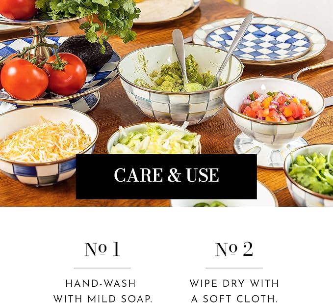 - ELEGANT ESSENTIAL: Elevate any meal with this decorative bowl. It has a hand-glazed heavy-gauge steel underbody and a bronzed stainless-steel rim and is decorated with hand-painted gray-and-white checks.
