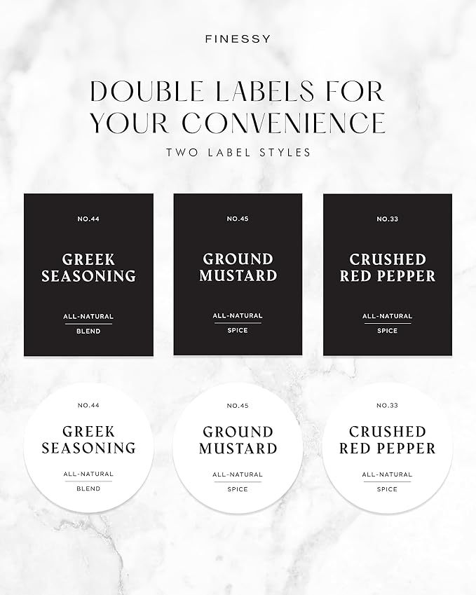 - MODERN BLACK LABELS FOR PERSONALIZATION: Add a refined touch to your kitchen with 240 waterproof, oil-resistant pre-printed black labels that resist peeling and smudging. Blank stickers are included with the seasoning jars with labels for custom blends, giving you the freedom to organize your spices your way